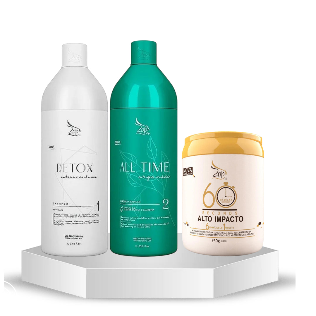 Lissage Brésilien ZAP All time Organic BIO (sans FORMOL) Masque1L & Shampoing 1L &Mascara High Alto Impacto 950g